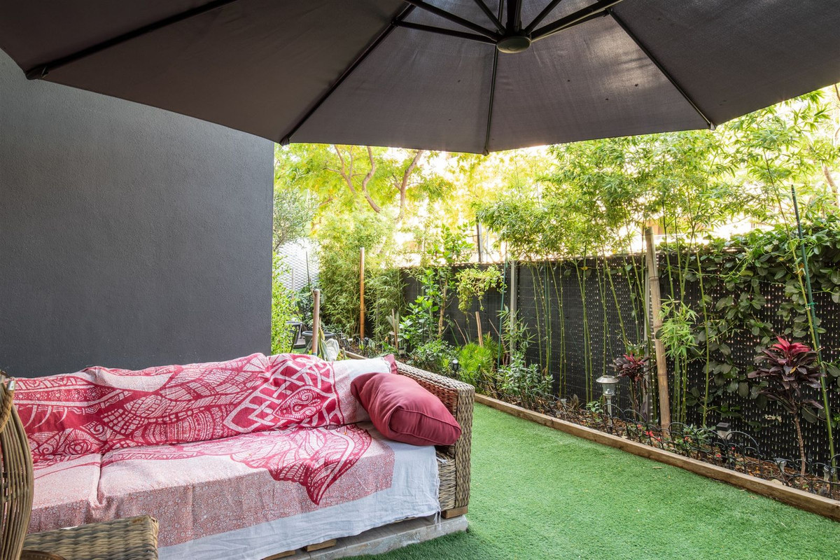 En la terraza, toldo eléctrico y césped artificial, creando un espacio cómodo y funcional.
