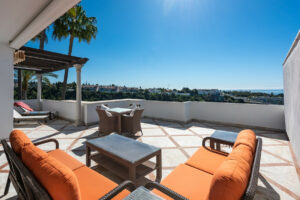 Amplio apartamento en primera planta con vistas panorámicas al mar, tres dormitorios dobles con baño, un gran salón, cocina independiente y lavadero, así como una gran terraza. Céntricamente situado en una urbanización de alta gama a poca distancia de las comodidades del casco antiguo de Marbella, en una de las mejores zonas de la Costa del Sol, el apartamento cuenta con impresionantes vistas, y habitaciones de gran tamaño en todo.