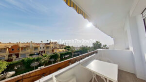 Ubicada en segunda planta con ascensor, la vivienda destaca por su terraza con vistas despejadas al mar, accesible desde el salón, perfecta para disfrutar del clima de la Costa del Sol durante todo el año.