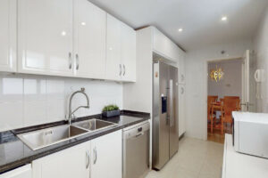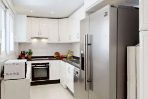 Tercer dormitorio: El apartamento era originalmente de dos dormitorios, pero recientemente se ha construido un tercer dormitorio en la amplia terraza. Este dormitorio es de primera clase y está homologado por la comunidad y el ayuntamiento. Puede utilizarse como dormitorio, gimnasio, despacho o como segunda sala de estar. Hay una cama plegable contra la pared cuando la habitación no se utiliza como dormitorio. Acceso directo a la terraza. Cocina: Totalmente equipada con lavavajillas, frigorífico/congelador, horno, vitrocerámica y sistema de filtrado de agua.