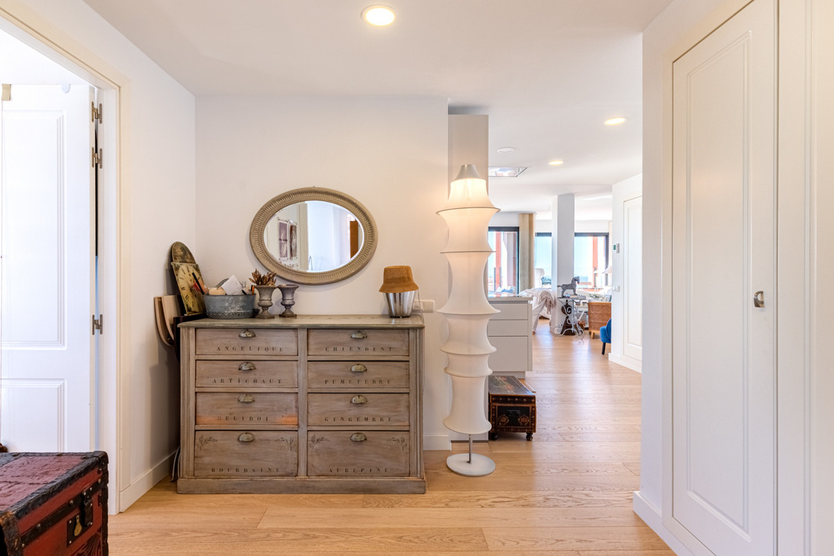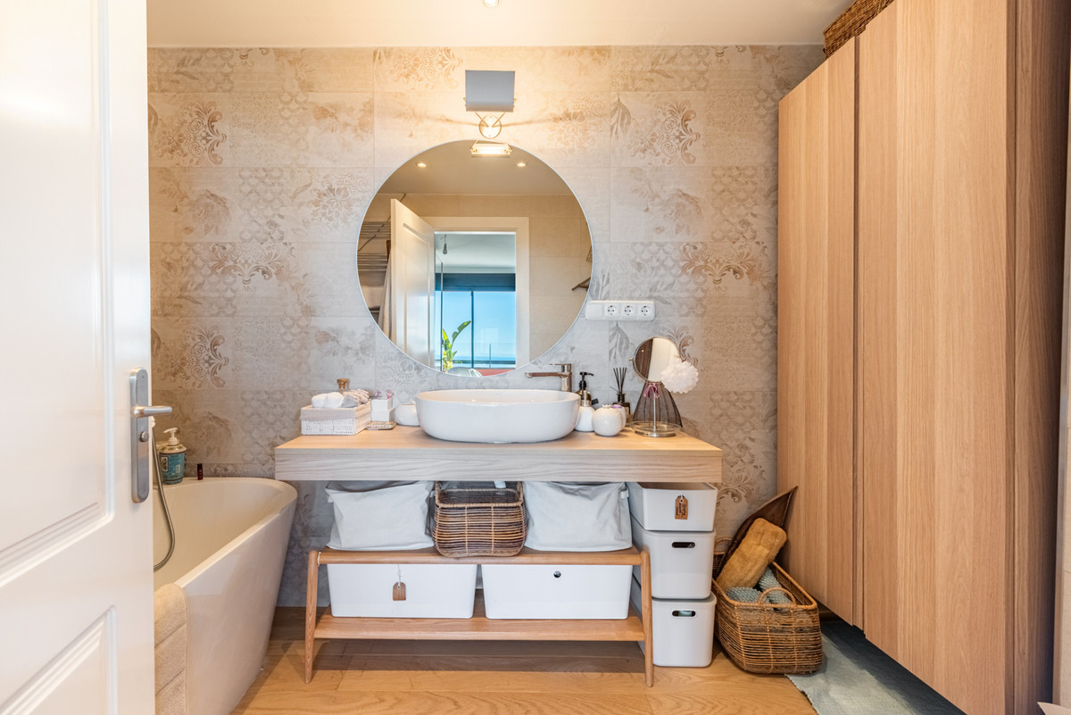 El dormitorio principal y el segundo dormitorio también tienen impresionantes vistas al mar desde ambos dormitorios con acceso directo a la terraza. Uno de los dormitorios tiene baño en suite con bañera y ducha. El segundo baño en el pasillo también tiene ducha.