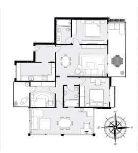 La vivienda cuenta con cuatro dormitorios y dos baños, con una distribución elegante pensada para el máximo confort. Originalmente de tres dormitorios, la terraza orientada al oeste ha sido integrada y convertida en un amplio cuarto dormitorio, ideal para familias numerosas, invitados o incluso como despacho.