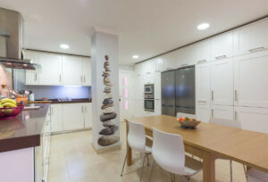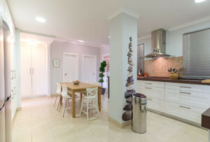 – Cocina abierta completamente equipada con electrodomésticos de alta gama.
