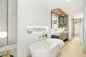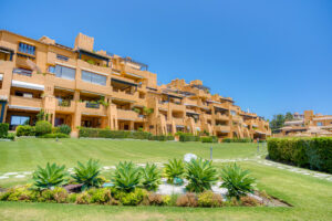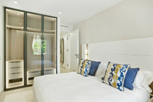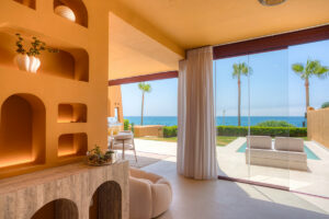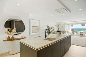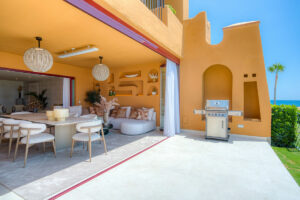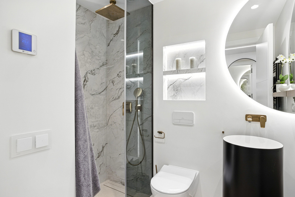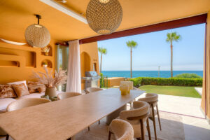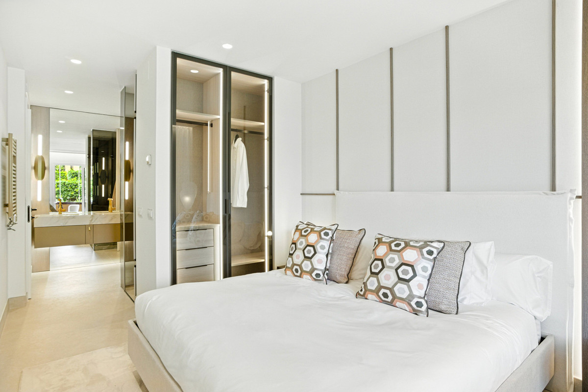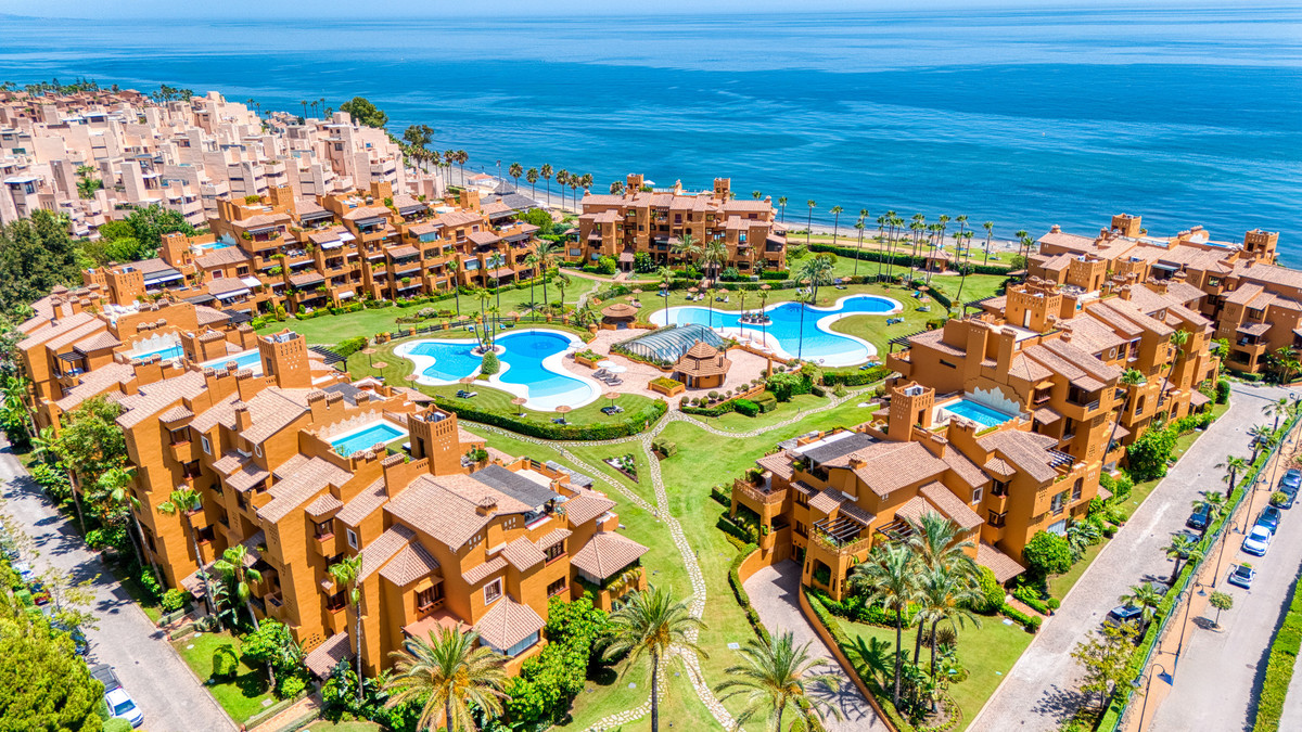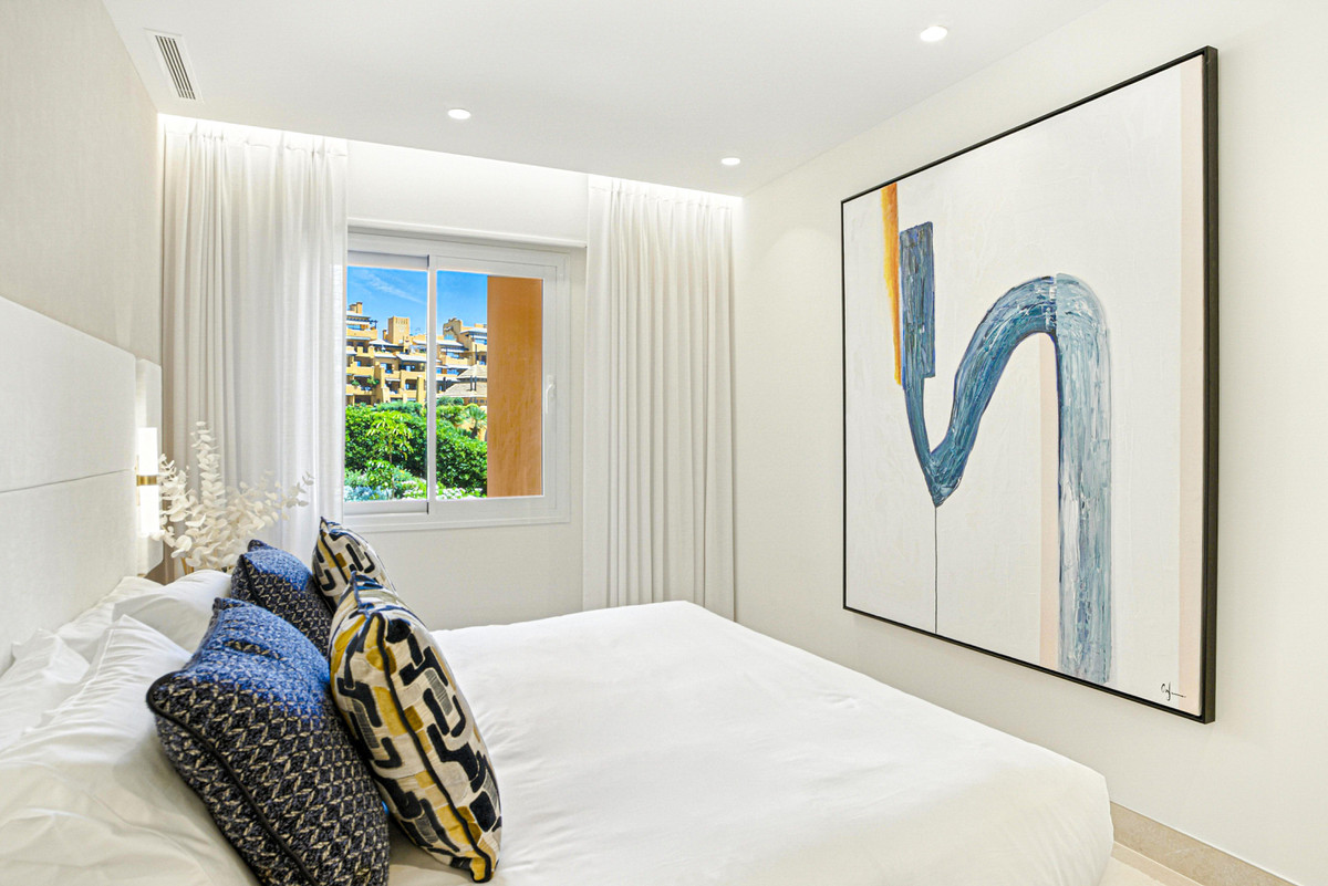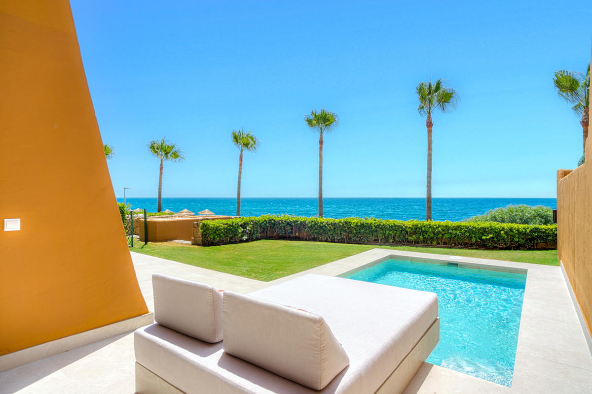 Impresionante apartamento orientado al sur con cuatro lujosos dormitorios y cuatro amplios baños, mezclando perfectamente la elegancia moderna con el confort de alta gama. Situado en la exclusiva urbanización Los Granados del Mar en la Nueva Milla de Oro, la residencia ofrece acceso directo a la playa y vistas panorámicas del Mar Mediterráneo. Completamente renovado con acabados premium, cuenta con una amplia terraza de 87 m2 con piscina privada y un exuberante jardín, perfecto para la relajación al aire libre. En su interior, encontrará una cocina abierta equipada con electrodomésticos alemanes de alto nivel, una placa invisible y una segunda cocina con nevera de vino, ideal para entretener. Entre los aspectos más destacados se incluyen suelos elegantes contemporáneos, calefacción por suelo radiante, una chimenea eléctrica, una bañera independiente, una sauna privada, una oficina dedicada, armarios personalizados y un sistema de sonido de última generación. Los residentes de esta exclusiva comunidad cerrada disfrutan de comodidades de clase mundial, incluyendo un restaurante in situ, piscina cubierta climatizada, dos piscinas al aire libre, gimnasio, sauna, jacuzzi, seguridad 24 horas, y cerca de restaurantes de alta gama, tiendas, escuelas internacionales, el nuevo complejo Laguna, y el corazón de Estepona.