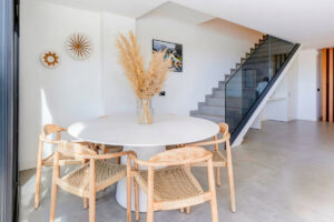 * Amplia cocina abierta, comedor y salón con ventanas de suelo a techo.