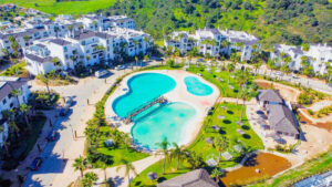 * Bar de cócteles y restaurante Blue Duck en el centro de la urbanización, cerca de una de las piscinas.