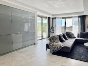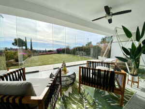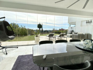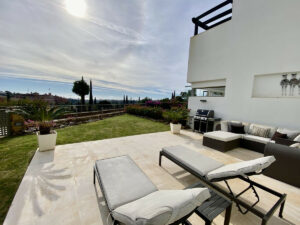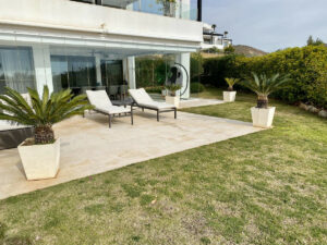 Con más de 212 m2 de espacio habitable meticulosamente diseñado, el apartamento cuenta con amplias terrazas que ofrecen vistas cautivadoras tanto del paisaje circundante como del campo de golf y el mar. La experiencia al aire libre se ve reforzada por dos jardines privados de generosas dimensiones adornados con olivos y limoneros.