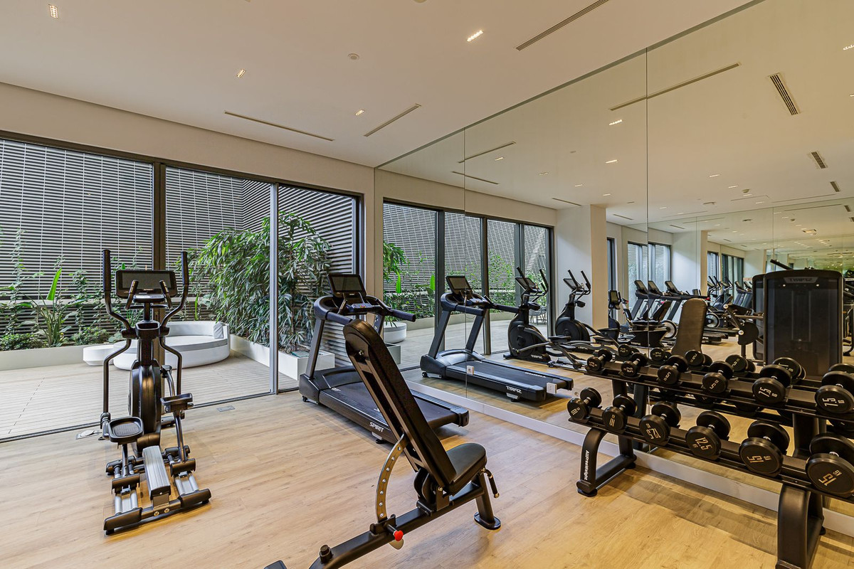 El edificio, terminado en 2024, cuenta con recepción/conserjería 24 horas, una impresionante piscina en la azotea en la planta 21 con bar para uso de los residentes, piscina cubierta climatizada con solárium, piscina exterior de forma libre con solárium independiente y camas balinesas, zona de spa que incorpora otra piscina cubierta