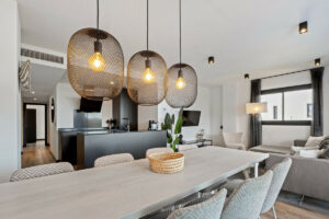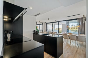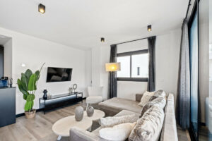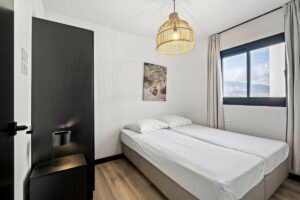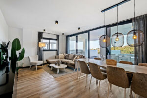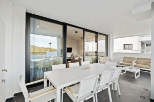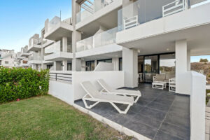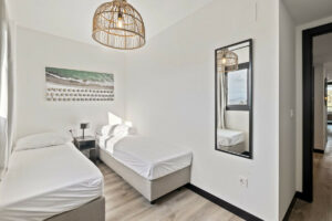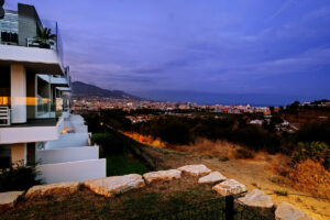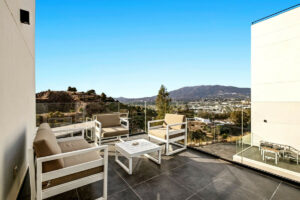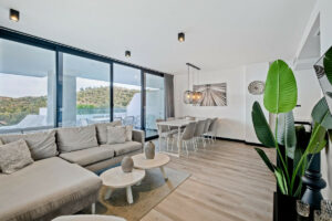 Cuenta con 4 amplios dormitorios y 2 baños completos, con una cocina de concepto abierto que se integra a la perfección con el salón, creando un espacio luminoso y acogedor. A diferencia de otros apartamentos del complejo, esta vivienda dispone de jardín, terraza trasera, terraza lateral y terraza delantera, garantizando sol todo el día, máxima privacidad y vistas espectaculares al mar, a la reserva natural cercana y a las colinas de Mijas.