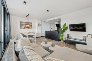 Los residentes disfrutan de excelentes servicios comunitarios, incluyendo gimnasio, sauna y lavandería completamente equipada. La vivienda también incluye plaza de garaje privada subterránea y trastero para mayor comodidad.