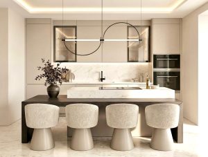 Cuatro elegantes y amplios dormitorios, cada uno con su propio y lujoso cuarto de baño en suite, ofrecen el entorno perfecto tanto para el descanso como para una vida refinada. Los dormitorios están equipados con camas grandes y cómodas de los siguientes tamaños: 200 x 200 cm, 180 x 200 cm y 160 x 200 cm.