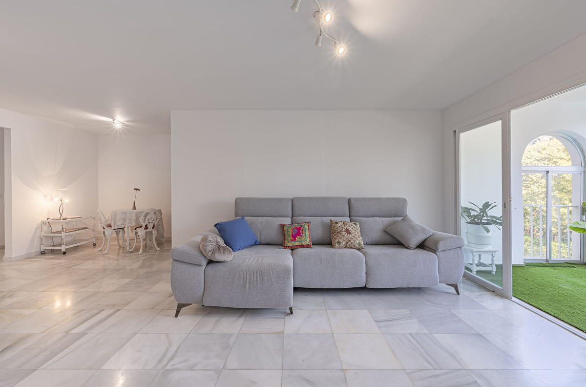Amplio piso para reformar en Nueva Andalucía, cerca de Centro Comercial Plaza y andando a Puerto Banus. Descubra una opción única! un amplio piso, diseñado en una sola planta, que se caracteriza por su distribución funcional y cómoda. Al entrar en la vivienda, le recibirá un amplio hall de entrada que conduce a una cocina independiente totalmente equipada con electrodomésticos y un lavadero. El salón-comedor es luminoso y ofrece acceso directo a una terraza cerrada con vistas abiertas. El piso cuenta con cuatro dormitorios de generosas dimensiones, todos ellos equipados con armarios empotrados que ofrecen un amplio espacio de almacenamiento. Además, hay dos baños completos, algunos de ellos en suite. Esta propiedad tiene muchas posibilidades de reforma.