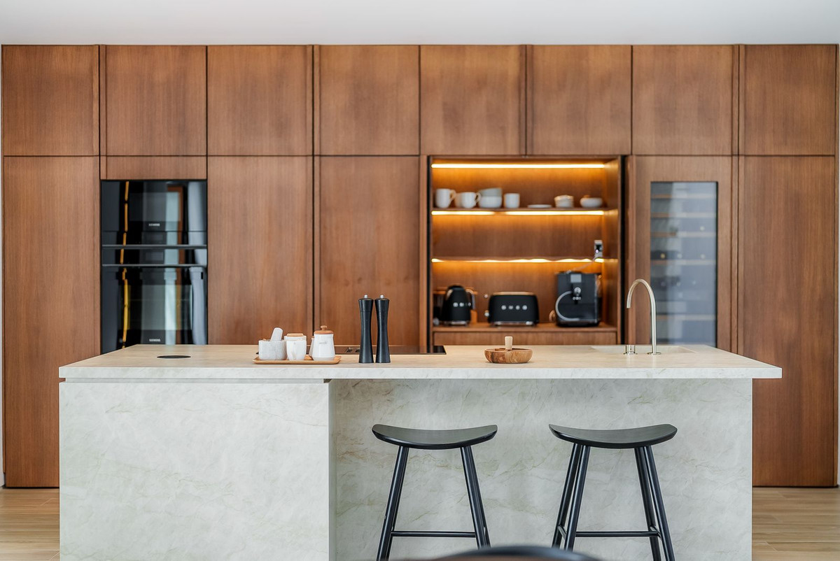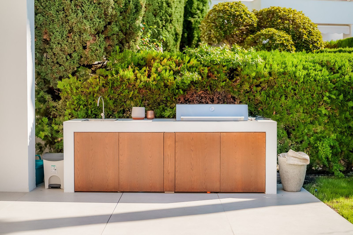 En la primera planta encontrarás un salón de concepto abierto junto con una cocina a medida. Un dormitorio de invitados con acceso directo al jardín y a la terraza, así como un baño para invitados. En la segunda planta hay 3 dormitorios, todos con baño en suite, donde el dormitorio principal también tiene su propio vestidor y una terraza privada con vistas a la zona de la piscina. Como valor añadido, este apartamento también cuenta con un cuarto de lavado que conduce directamente al garaje.