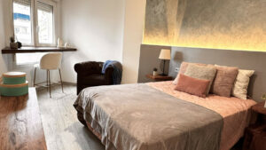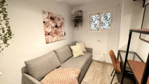 • 1 despacho/dormitorio multifuncional, equipado con sofá cama.