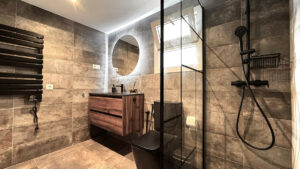 • 2 baños impecables, con acabados contemporáneos, platos de ducha amplios y detalles en madera y piedra.