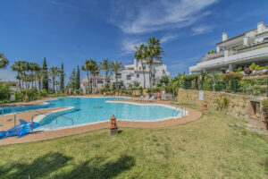 La propiedad se encuentra dentro de una exclusiva urbanización con seguridad 24 horas, piscinas exteriores y bonitos jardines.