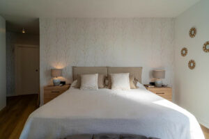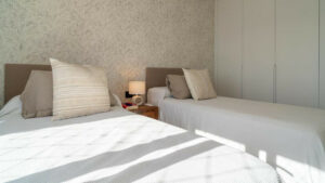 La vivienda dispone de 5 dormitorios y 4 baños, se encuentra en una planta intermedia y se mantiene en muy buen estado. Ofrece magníficas vistas al mar y a la playa, creando un ambiente luminoso y relajante.