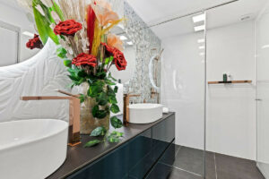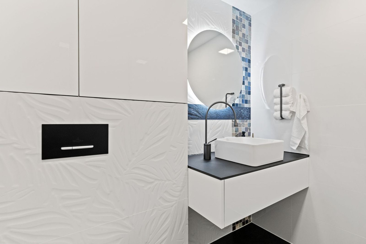El baño principal destaca por sus sanitarios de Villeroy & Boch y una ducha de diseño actual. Además, dispone de un aseo independiente para invitados.