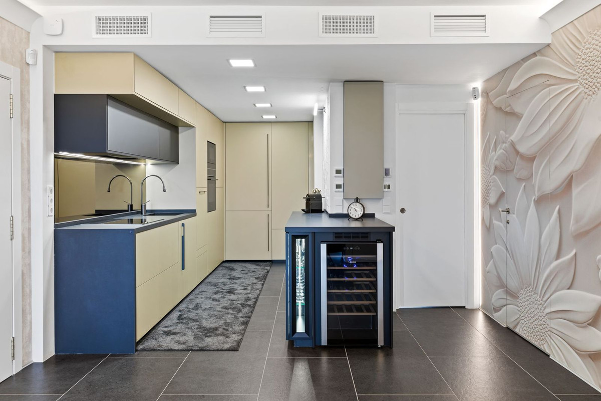 La cocina, hecha a medida por un carpintero, se integra con elegancia en el espacio, junto con mobiliario diseñado para ofrecer orden y armonía. Toda la instalación eléctrica y de fontanería es nueva, y la vivienda cuenta con suelo radiante por estancias, aire acondicionado por zonas con sistema Airzone, grifería Gessi y un sistema de aerotermia eficiente.