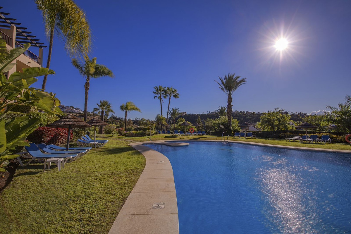 Está situada en Los Pinos, una de las urbanizaciones más valoradas de Los Arqueros, conocida por la calidad de sus construcciones y su entorno tranquilo y cuidado. El complejo ofrece amplias zonas ajardinadas, dos piscinas (una de ellas climatizada) y un ambiente residencial seguro y agradable.