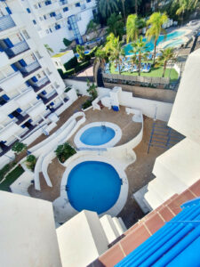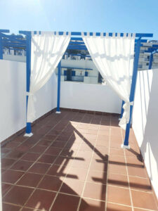 Se vende apartamento a unos pasos del paseo marítimo de Benalmádena. Con una magnífica ubicación, esta vivienda en la última planta de una urbanización cerrada, ofrece piscina, trastero y parking debajo del mismo edificio. La propiedad dispone de entrada, salón- cocina con salida a una bonita terraza con vistas al mar, dormitorio con armario empotrado. Se sube a la planta alta donde encontramos una terraza de 45 metros con barbacoa donde disfrutar de las largas tardes-noches de verano. La vivienda cuenta con aire acondicionado centralizado. Cocina amueblada y equipada.