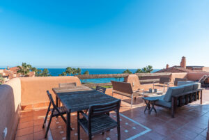 Descubra un exquisito ático en la prestigiosa comunidad de Mar Azul, situado en el extremo este de Estepona. Esta vivienda de 1 dormitorio y 1 baño ofrece 134 m² de espacio habitable cuidadosamente mantenido, complementados por una espectacular terraza privada de 56 m² con vistas panorámicas al mar y a los alrededores. Ubicado directamente en primera línea de playa, este inmueble brinda una oportunidad única para disfrutar del icónico estilo de vida de la Costa del Sol.