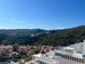 La terraza privada es uno de sus grandes atractivos: un lugar privilegiado para disfrutar de un café por la mañana o relajarse al atardecer. Las vistas son espectaculares, con el mar extendiéndose ante ti y las montañas elevándose al fondo, un paisaje que invita a desconectar sin salir de casa. Además, la vivienda pertenece a una comunidad con piscina, perfecta para refrescarse en los días calurosos y socializar con tus vecinos en un entorno tranquilo y cuidado.