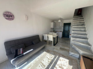 Al entrar, te recibe un espacio abierto donde salón y cocina equipada se integran con elegancia, ideal para quienes valoran un estilo de vida moderno pero acogedor. En la planta superior, el dormitorio ofrece privacidad y confort, mientras que el baño está cuidadosamente diseñado para optimizar el espacio disponible. Gracias a los ventanales, la luz natural baña cada estancia, creando una atmósfera luminosa y cálida.
