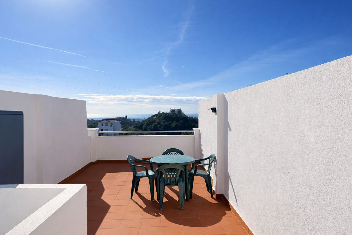 Bonito apartamento dúplex en la urbanización Las Abejeras – Forest Hills, Estepona. A unos 20 minutos en coche del centro de la ciudad y de San Pedro. A 6 km del exclusivo centro comercial Laguna Village y de la playa. Orientación sur con espectaculares vistas panorámicas al mar, a Gibraltar y a la costa africana. Consta de: Hall de entrada. Salón/comedor con acceso directo a la amplia terraza. Cocina americana totalmente equipada. En la planta inferior se encuentra un dormitorio doble con un cuarto de baño baño en suite con bañera. Aire acondicionado frío/calor.