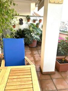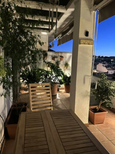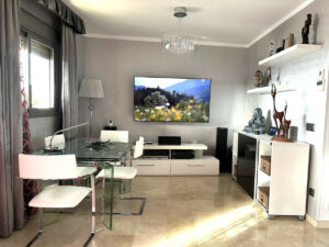 El piso, situado en una tercera planta con ascensor es completamente exterior y dispone de amplios ventanales, incluso en cocina y baño, lo que le aporta una gran luminosidad incluso en los días más nublados. Su magnífica orientación permite disfrutar de las zonas exteriores tanto en verano como en invierno. En su parte exterior está equipado con cinco toldos (tres delante y dos detrás) que dan una magnífica sombra necesaria en los cálidos días de verano. La terraza trasera cuenta con luces indirectas (focos de exterior) y equipamiento de riego automático para plantas incluso con alcance para las macetas de la ventana de la cocina. Interiormente, la vivienda cuenta además con aire acondicionado frío/ calor y dispositivo air zone para controlar la temperatura de cada estancia de manera independiente. La solería es de mármol y las ventanas de aluminio de doble acristalamiento.