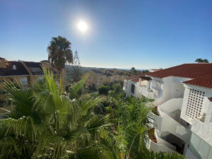 Descubre este luminoso y espacioso ático de 2 dormitorios y 2 baños ubicado en la codiciada zona de Bel Air, Estepona. Situado en la segunda planta, esta encantadora propiedad cuenta con elegantes suelos de mármol en todo el apartamento y armarios empotrados que ofrecen amplio espacio de almacenamiento.
