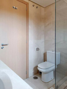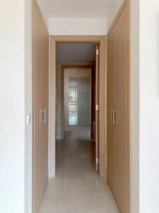 La vivienda cuenta con dos dormitorios equipados con armarios empotrados, un salón amplio con abundante luz natural, cocina abierta con zona de lavado y una gran terraza privada. El dormitorio principal incorpora un baño en suite con bañera de hidromasaje. Desde el salón y dormitorio principal se accede a una amplia terraza par disfrutar con familia y amigos, con vistas a la piscina comunitaria y los jardines.