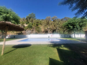 Un campo de prácticas de golf con su propio putting green. La piscina comunitaria tiene una piscina para adultos y otra para niños.