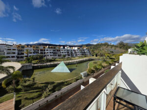 Este luminoso y espacioso ático dúplex de un dormitorio se encuentra en un popular complejo residencial sobre Selwo, en la Nueva Milla de Oro, a menos de 10 minutos en coche de playas y comercios. Esta propiedad es muy versátil, ofreciendo al comprador la opción de crear un segundo dormitorio y baño en la entreplanta de la planta superior si se necesita otro dormitorio. Las terrazas de 43 m² con orientación oeste ofrecen vistas despejadas a la urbanización, al mar y al campo circundante, lo que lo convierte en el lugar ideal para cenar al aire libre, disfrutar de una siesta tranquila o contemplar las gloriosas puestas de sol que caracterizan a Marbella.