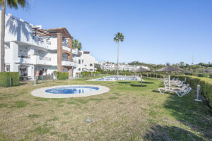 La propiedad incluye plaza de garaje y trastero. La urbanización ofrece piscina comunitaria para adultos y niños, jardines cuidados y un entorno seguro durante todo el año.