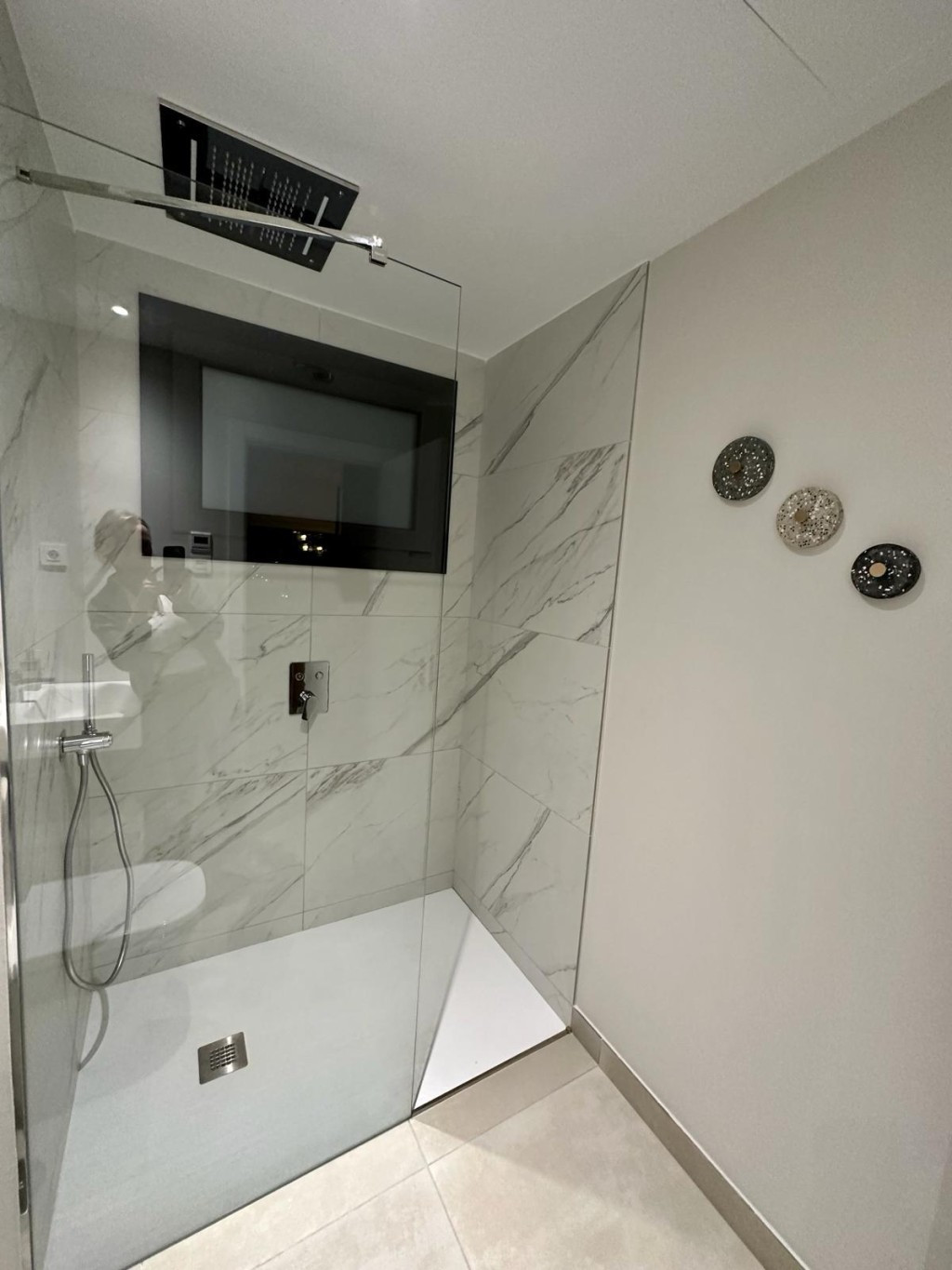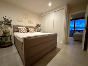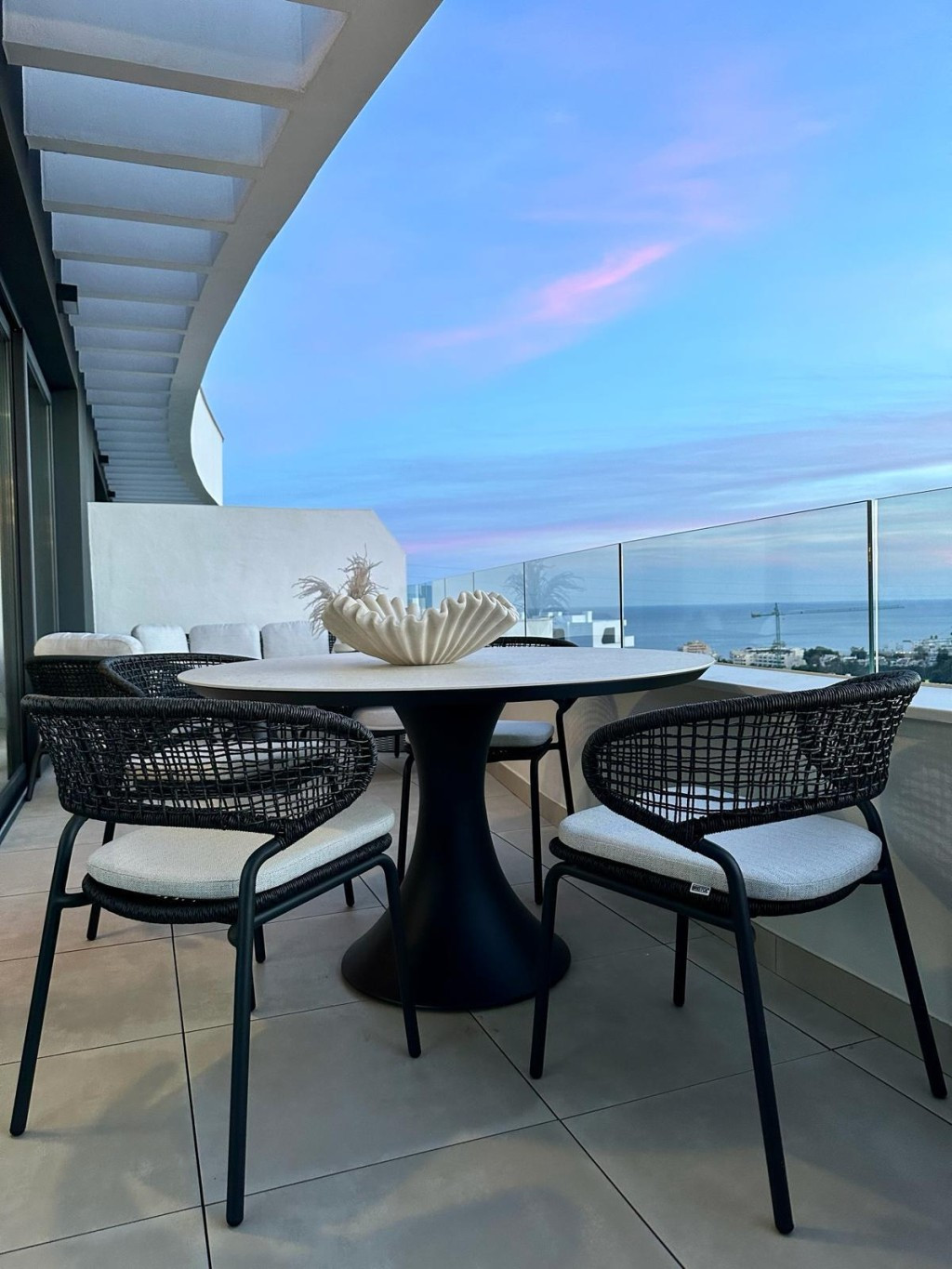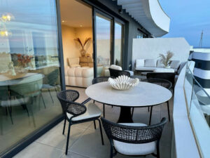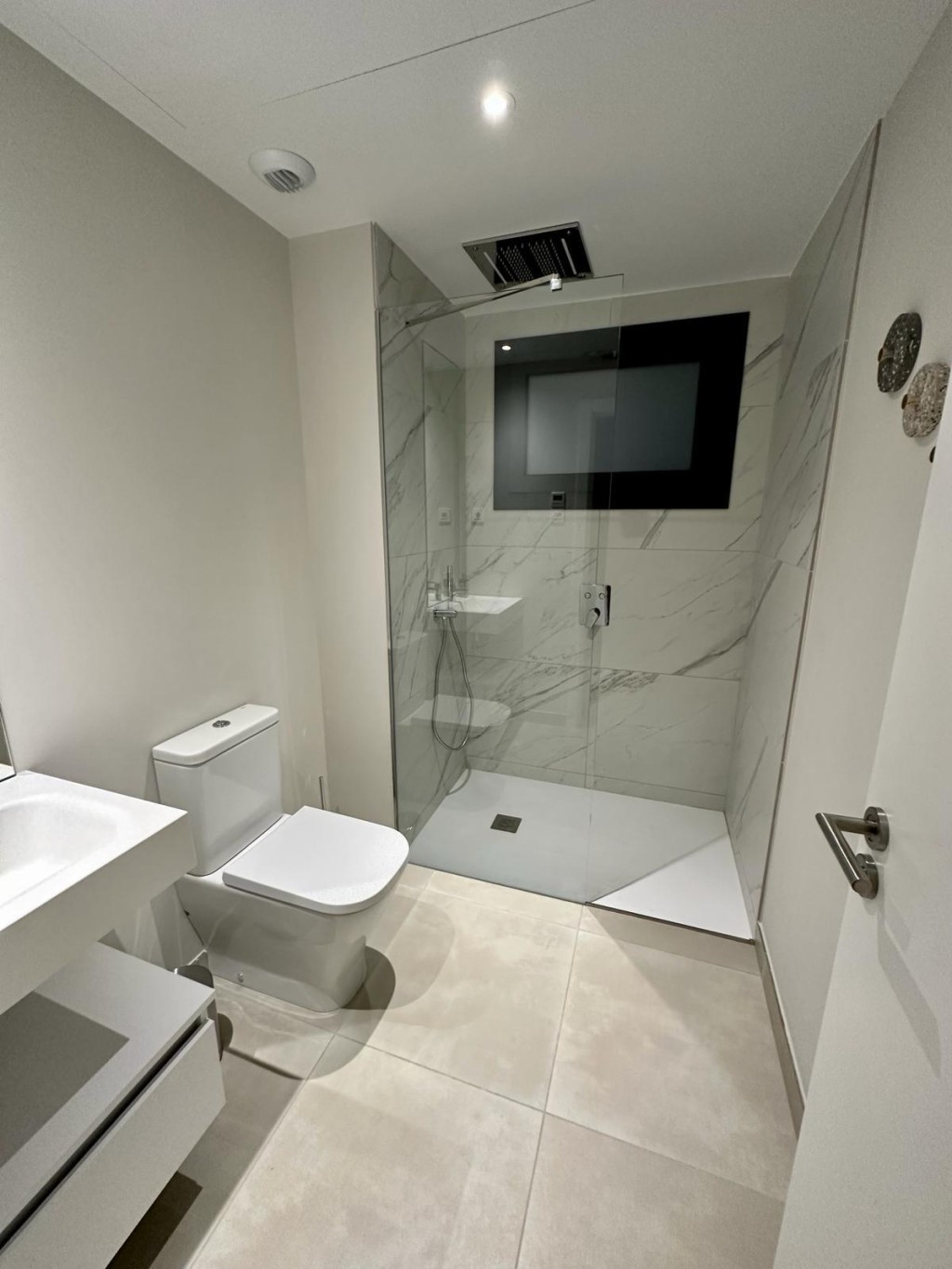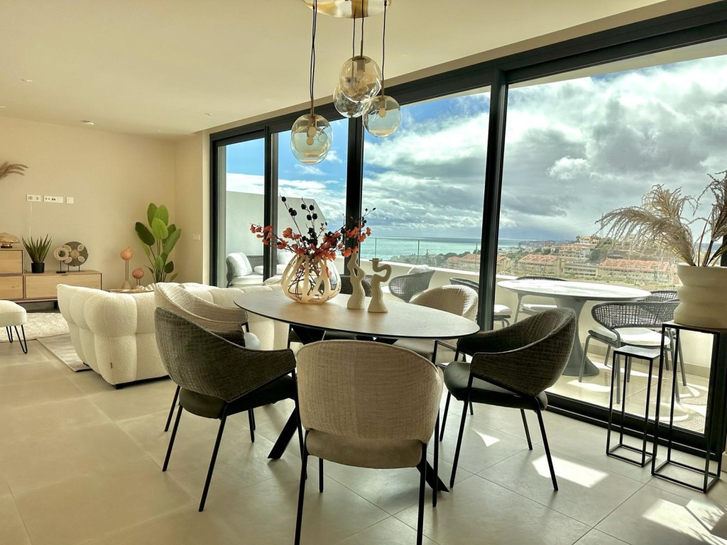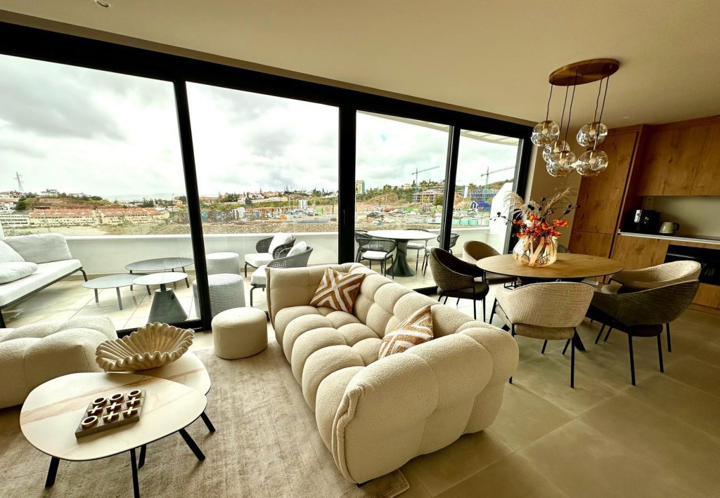 Ático moderno de nueva construcción en El Higuerón en Fuengirola con dos dormitorios, un cuarto de baño con azulejos no estándar, ducha de lluvia y suelo radiante, cocina de concepto abierto al salón y la preciosa terraza con impresionantes vistas al mar. Se vende amueblado y dispone de plaza de parking en superficie, plaza de parking subterránea y trastero. Aire acondicionado frío y calefacción mediante aerothermia, estores eléctricos en el salón, luces regulables, conexiones de tv e internet en salón y dormitorios. Complejo cerrado con piscinas e instalaciones. La playa y el paseo marítimo de Fuengirola se encuentran a unos 15 minutos caminando. La comunidad permite alquiler vacacional.
