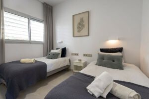 Los dos dormitorios, diseñados con el máximo confort en mente, ofrecen un refugio de tranquilidad, garantizando noches reparadoras y mañanas serenas. La suite principal destaca por su bañera privada, añadiendo un toque de exclusividad a este hogar de lujo. Además, esta propiedad incluye una serie de extras como calefacción por suelo radiante, luces LED integradas, sistema de climatización por aerotermia, persianas eléctricas, agua filtrada, dos amplias plazas de aparcamiento subterráneo y un espacioso trastero.