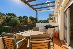 El resto de la terraza ofrece un vasto espacio exterior para tomar el sol y comer al aire libre.