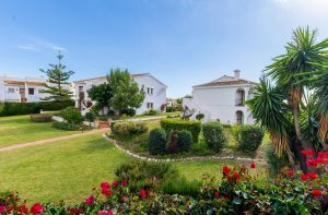 La comunidad ofrece una piscina comunitaria bien mantenida y jardines tropicales con palmeras, exquisitamente decorados con altas palmeras, coloridas buganvillas y elementos de jardín romano andaluz, diseñados dentro de sus exquisitos senderos de baldosas que decoran la comunidad.