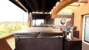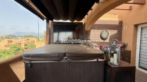 La característica más destacada de esta propiedad es la terraza reformada, que ofrece vistas panorámicas al campo de golf y a la vegetación circundante, perfecta para cenar al aire libre, relajarse bajo el sol o disfrutar del jacuzzi y las puestas de sol.