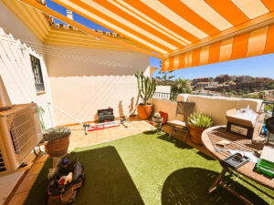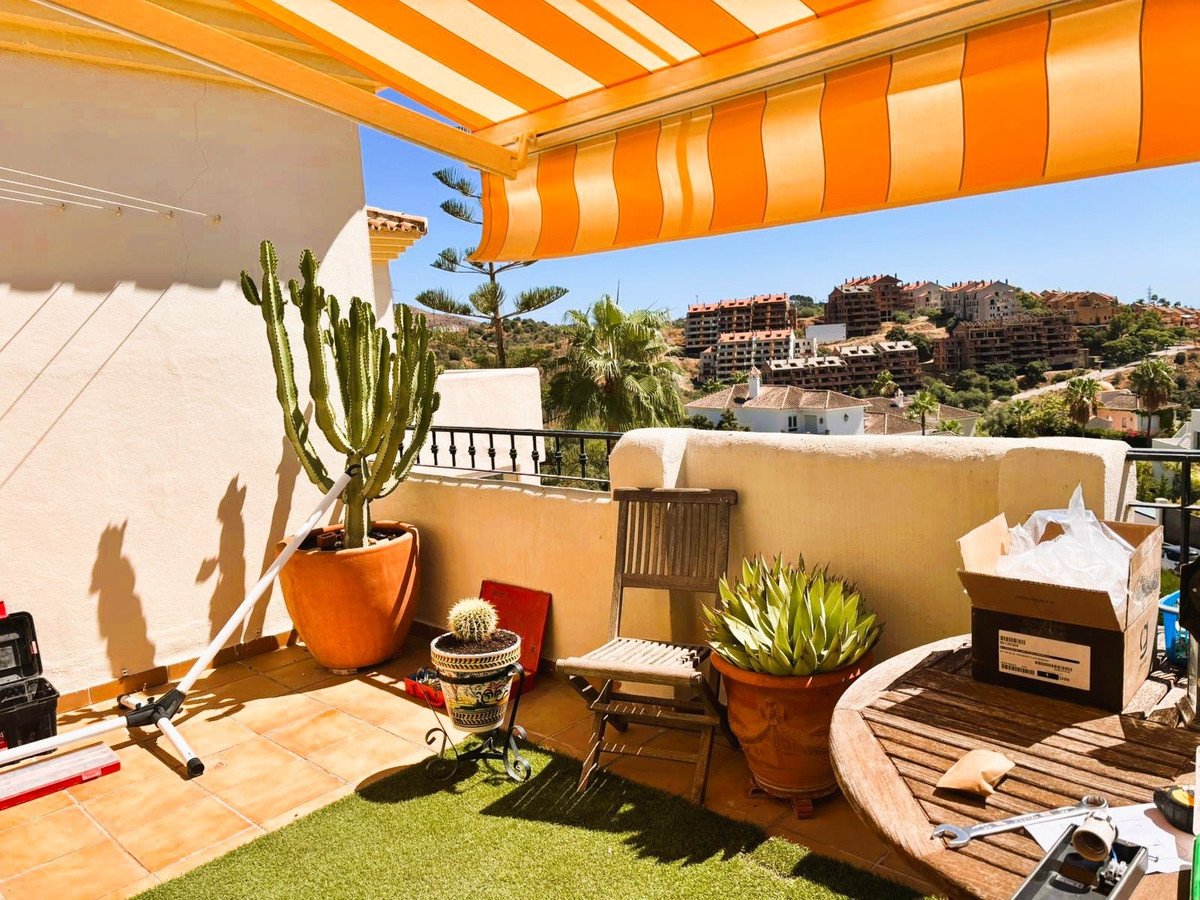 Preciosa vivienda en impecable estado de conservación en la zona de Elviria, cerca del golf y a menos de 5 min en coche a la playa ! Urbanización tranquila, muy residencial, ideal para vivir todo el año . Vivienda tipo dúplex, en planta baja pero con altura, sin necesidad de coger ascensor ni escaleras, siendo muy cómodo!!! La vivienda hace esquina con lo cual es muy soleada y luminosa , tiene sol todo el día!! Terraza muy grande a la entrada de la vivienda, cuenta con toldos y sol de tarde, entrando nos encontramos con amplio salón comedor con cocina abierta , equipada completamente, salón espacioso que da salida a la segunda terraza , orientada al sur , con vistas despejadas al mar , sol todo el día!! También cuenta con toldos nuevos!!
