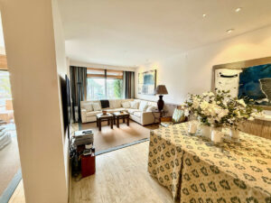 La exclusiva comunidad ofrece jardines tropicales, piscinas, canchas de tenis y acceso directo a la playa.