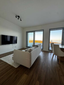 • Distribución funcional – dos dormitorios cómodos, dos baños completamente equipados, un amplio salón con cocina abierta y acceso a una terraza con una vista impresionante.