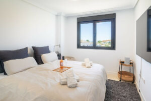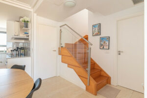 La planta principal cuenta con una cocina totalmente equipada, una luminosa zona de salón-comedor con acceso a una terraza privada y 2 amplios dormitorios, uno de ellos con baño en suite y armarios empotrados. En la planta superior se encuentra un solárium en la azotea con cocina exterior y barbacoa, perfecto para disfrutar de cenas al aire libre y relajantes atardeceres.