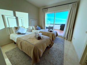 Se ofrece alojamiento para un máximo de 4 huéspedes en un ático totalmente climatizado con dos dormitorios dobles, dos cuartos de baño, una cocina totalmente equipada con electrodomésticos modernos y un amplio salón. El apartamento de 200 m² incluye una gran terraza con vistas al jardín y los alrededores.