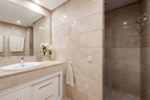 El dormitorio y el baño de invitados son ideales para visitas, y el dormitorio principal cuenta con un amplio armario y baño en suite.