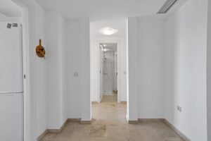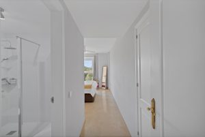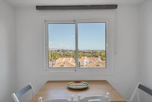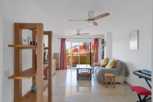 En el interior, el apartamento cuenta con una distribución amplia y equilibrada, pensada para el confort diario. El salón-comedor, amplio y muy luminoso, tiene acceso directo a una terraza orientada al oeste, ideal para relajarse, comer al aire libre y disfrutar de las vistas al jardín, la piscina y el mar, especialmente al atardecer.