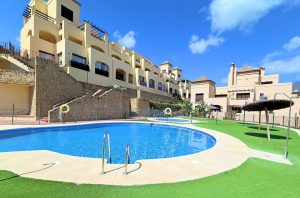 El complejo cuenta con piscinas comunitarias, ideales para disfrutar durante todo el año. Además, la propiedad incluye plaza de garaje y trastero, aportando comodidad y funcionalidad.
