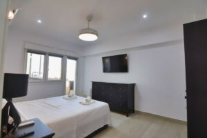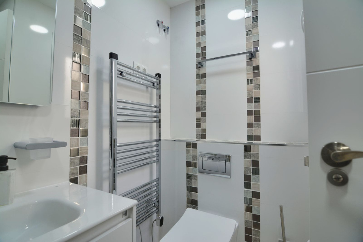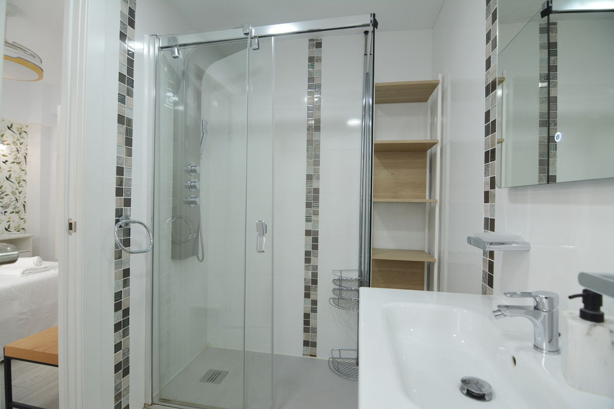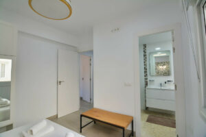 Dispone de dos baños completos: uno con bañera de hidromasaje y el otro en suite con el dormitorio principal, que incluye una moderna ducha. Además, uno de los dormitorios ofrece acceso directo a la terraza, permitiendo disfrutar del ambiente costero desde tu propia habitación.