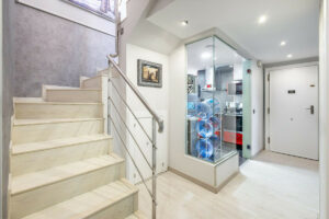La planta principal cuenta con un dormitorio en suite con amplio vestidor, un segundo dormitorio, baño completo, cocina y un salón acogedor. Todo ello bañado en luz natural y climatizado en todas sus estancias para garantizar el máximo confort durante todo el año. Las carpinterías exteriores son de tipo Climalit, aportando excelente aislamiento térmico y acústico.